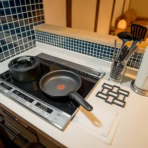 The Kyoto property includes a full kitchen plus a microwave, a refrigerator, and kitchenware. This villa is within 5 minutes' walk of restaurant Kyo Chabana Kyotoekimae.